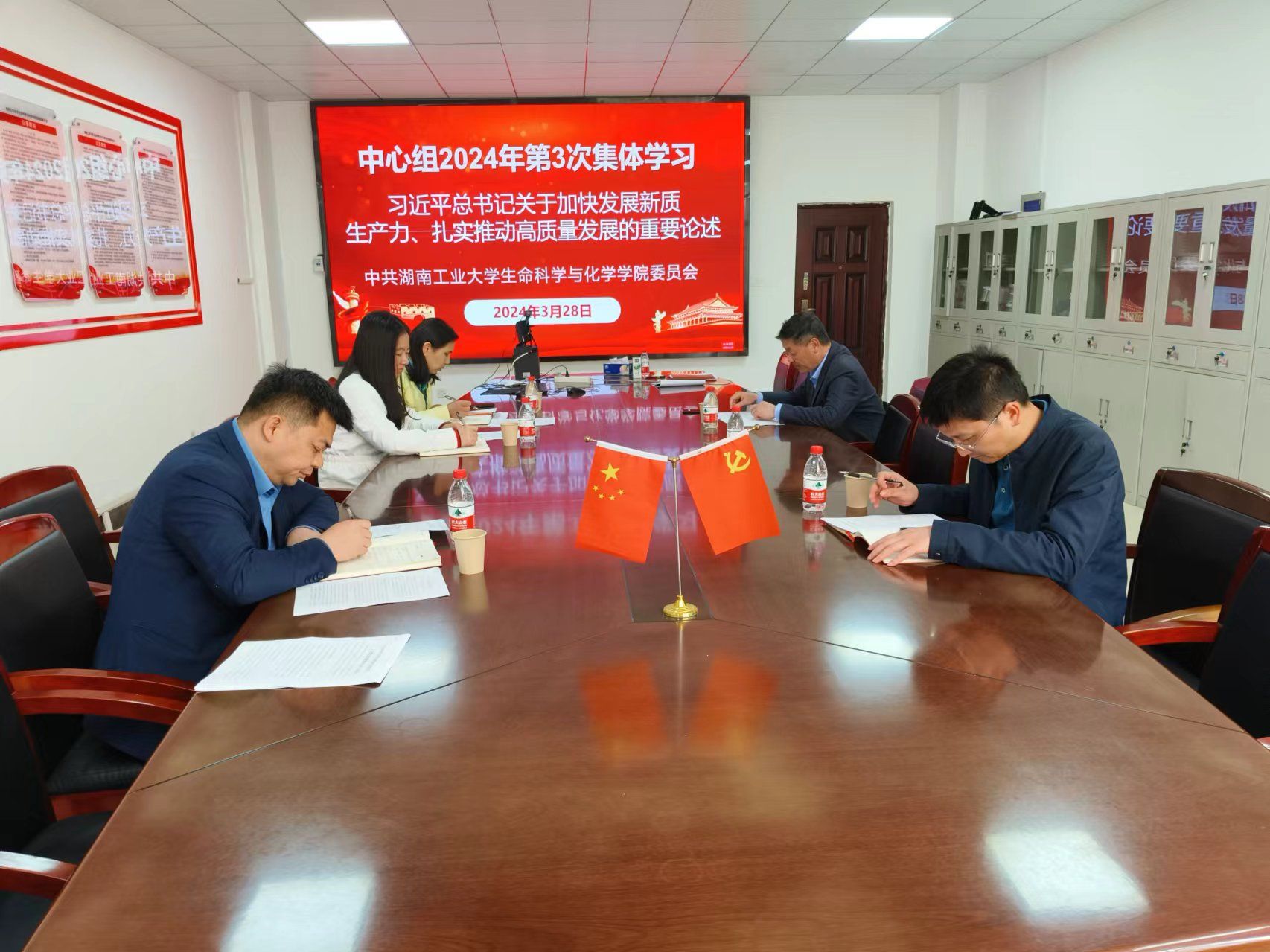 3月28日下午,学院党委政治理论学习中心组在崇仁楼104会议室召开2024年第三次集中学习。学习的主题是习近平总书记关于加快发展新质生产力、扎实推动高质量发展的重要论述。