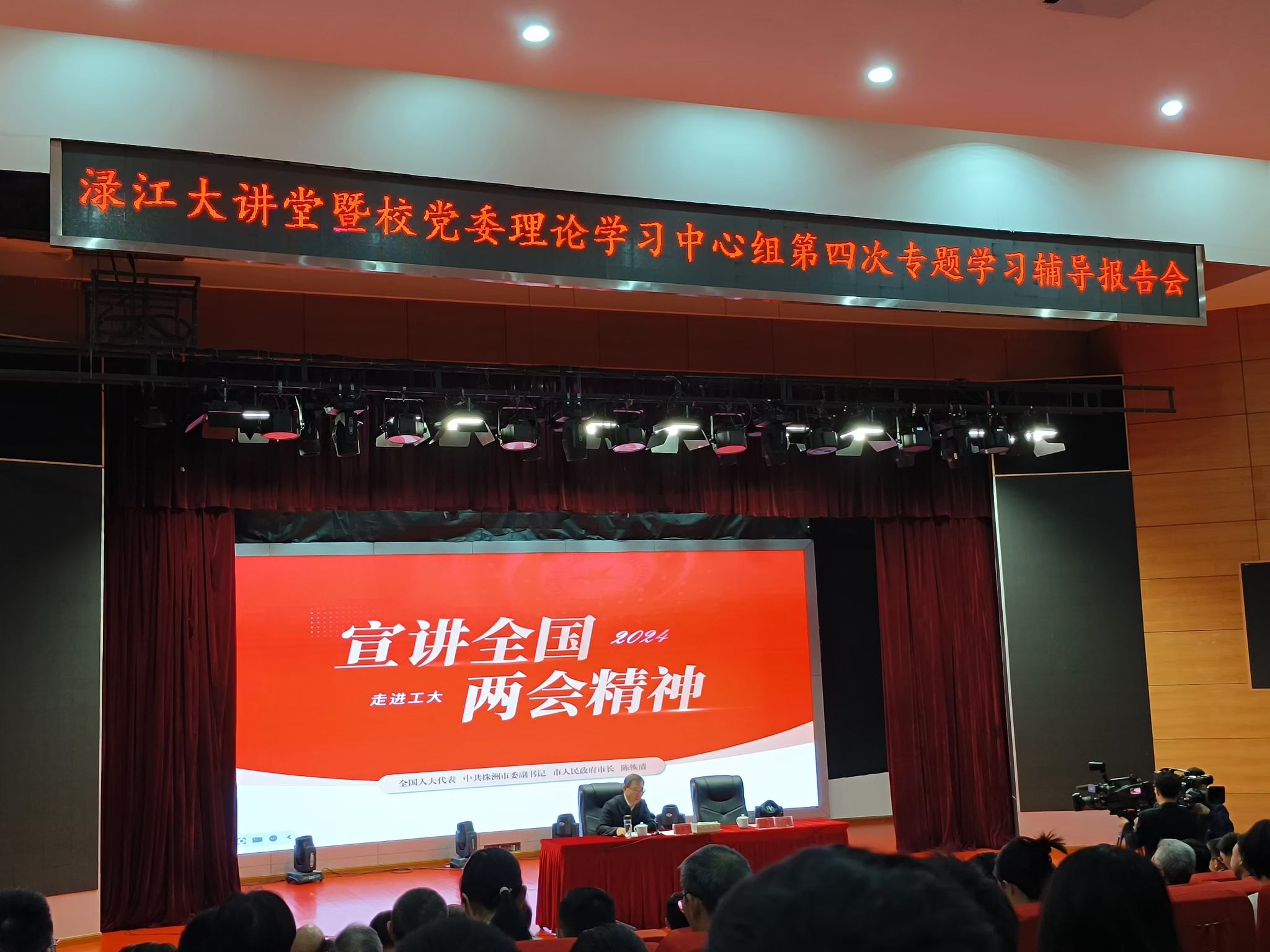 为深入学习”两会“精神,按照省委、市委统一部署,4月9日上午,全国人大代表、株洲市党委副书记、市长陈恢清来校,在崇乐楼音乐厅宣讲全国”两会“精神。学院党政领导、处级干部和教师、学生代表参加。