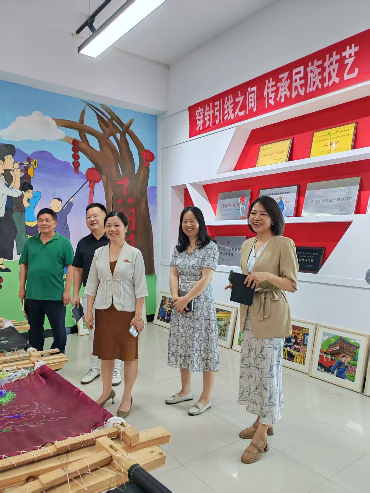 参观湖南省苗绣研究基地时双方探讨了非遗技艺与生物材料跨界的可能性,碰撞出“用设计语言表达医工成果”“以医工技术拓展设计边界”的跨界灵感,现场气氛热烈。