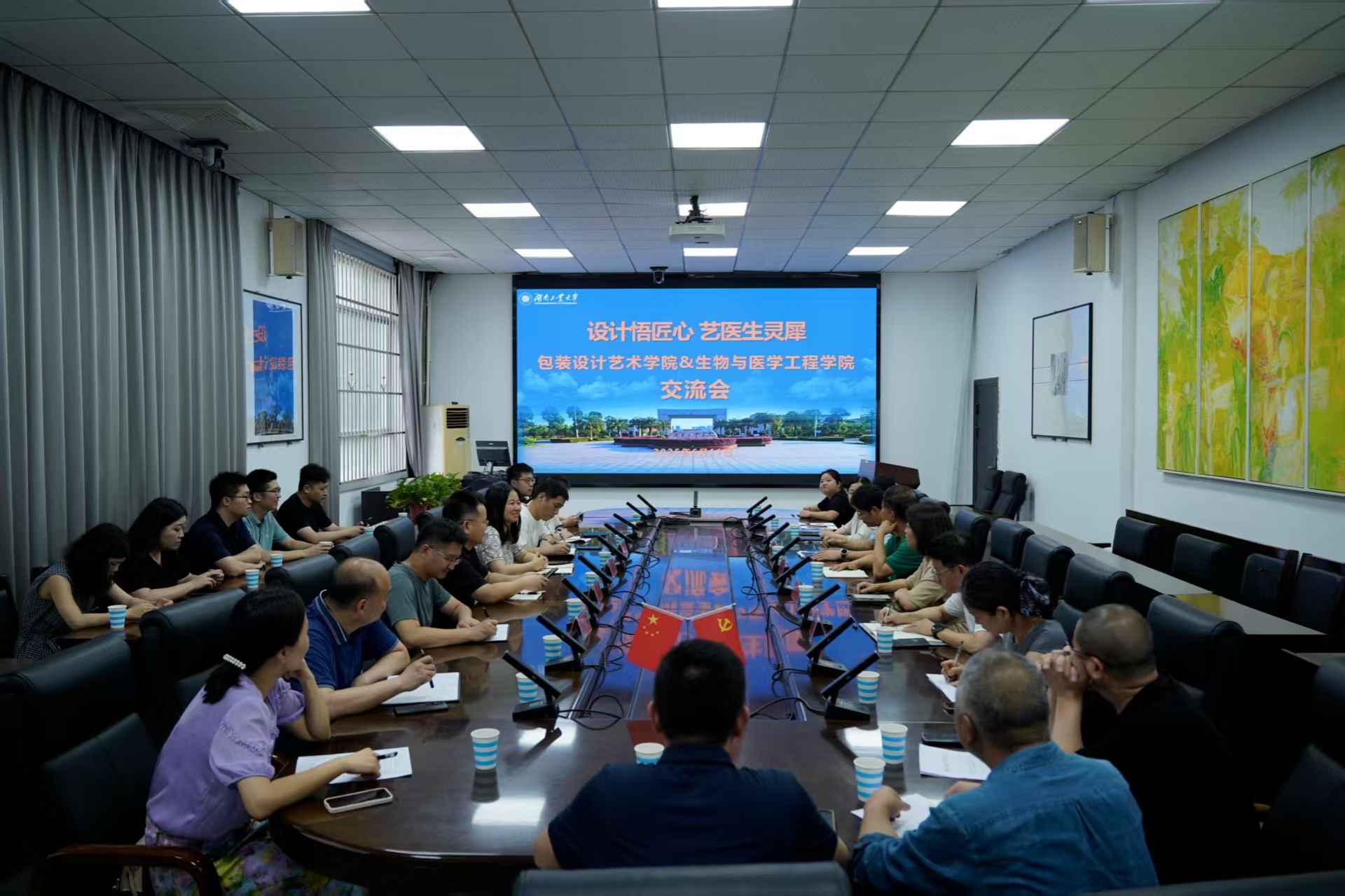 为深化学科交叉融合,共探转型发展路径,6月11日,我院和包装设计艺术学院联合举办了“设计悟匠心 艺医生灵犀”主题学习交流活动。两院领导班子、中层干部及学科骨干齐聚一堂,通过实地参观、工作室体验与专题座谈,共话“匠心”传承与“灵犀”共鸣。