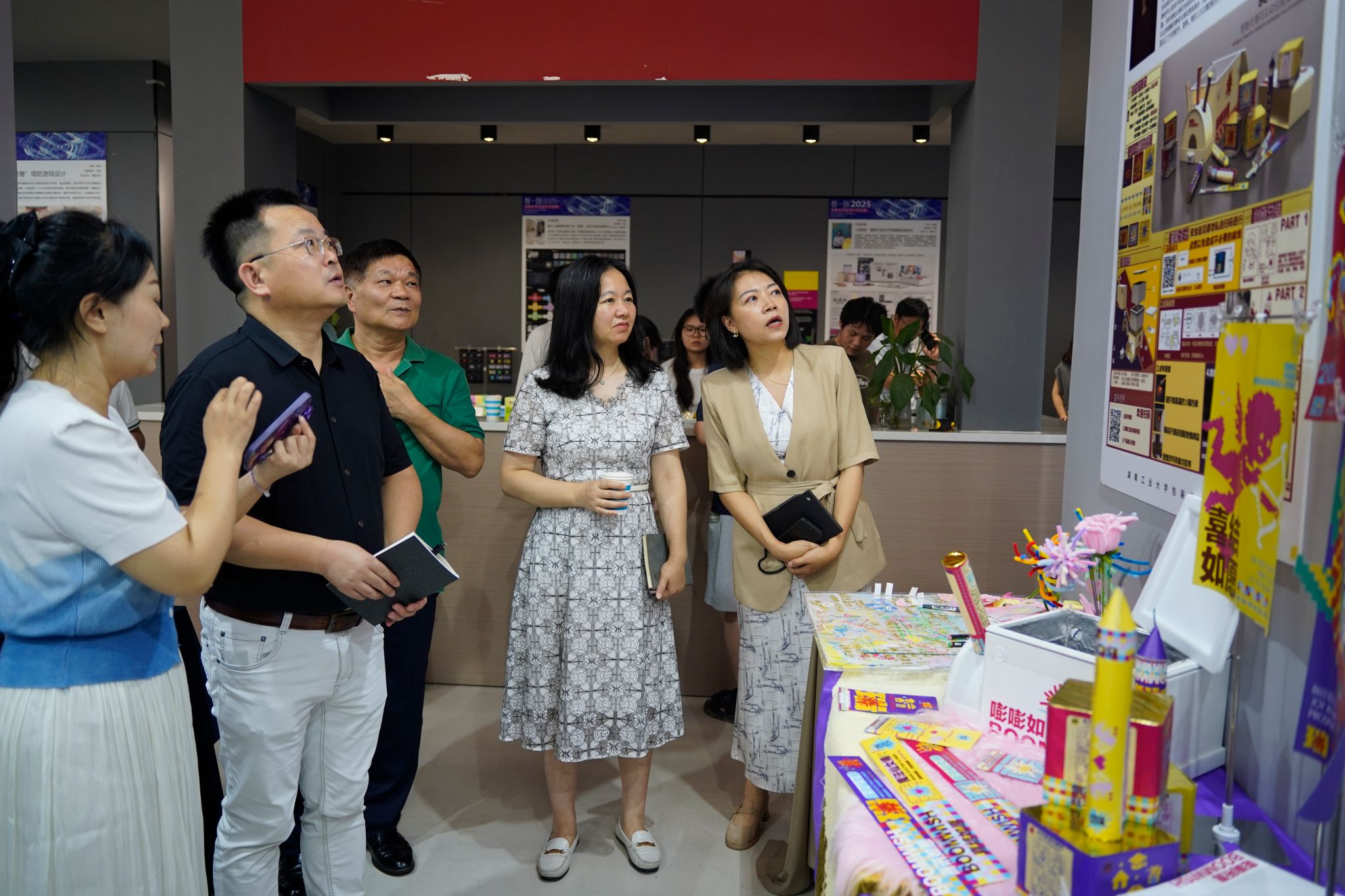 交流活动首站走进包装设计艺术学院“智・创”2025年本科生毕业设计展。展厅内,从融入非遗元素的文创产品到智能交互的生活实际问题解决方案,从可持续应用的包装材料设计到充满人文关怀的视觉传达作品,每一件展品都以回“应时代命题”为出发点,深耕本土文化的现代化和国际化转译,无不彰显“设计精益”的匠心追求。