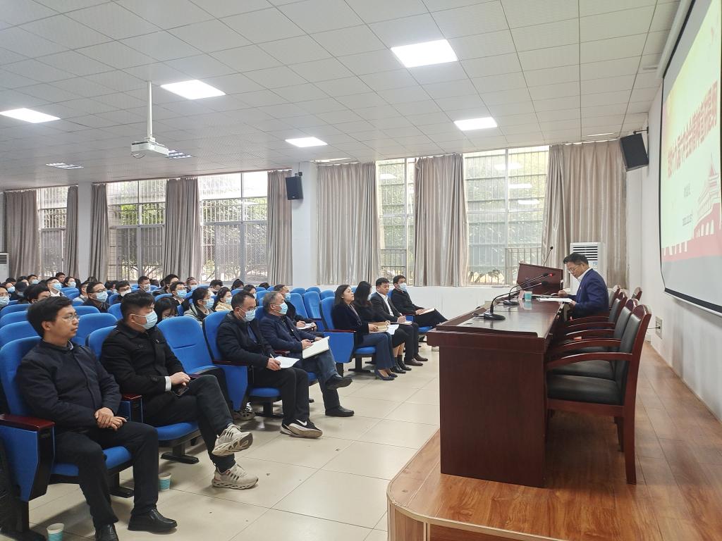 12月15日上午,在崇仁楼一楼报告厅举办了学习党的十九届六中全会精神专题宣讲报告会。校党委书记谭益民为我院和城环学院全体教职工以及学生党员代表、党政办支部党员作宣讲报告。