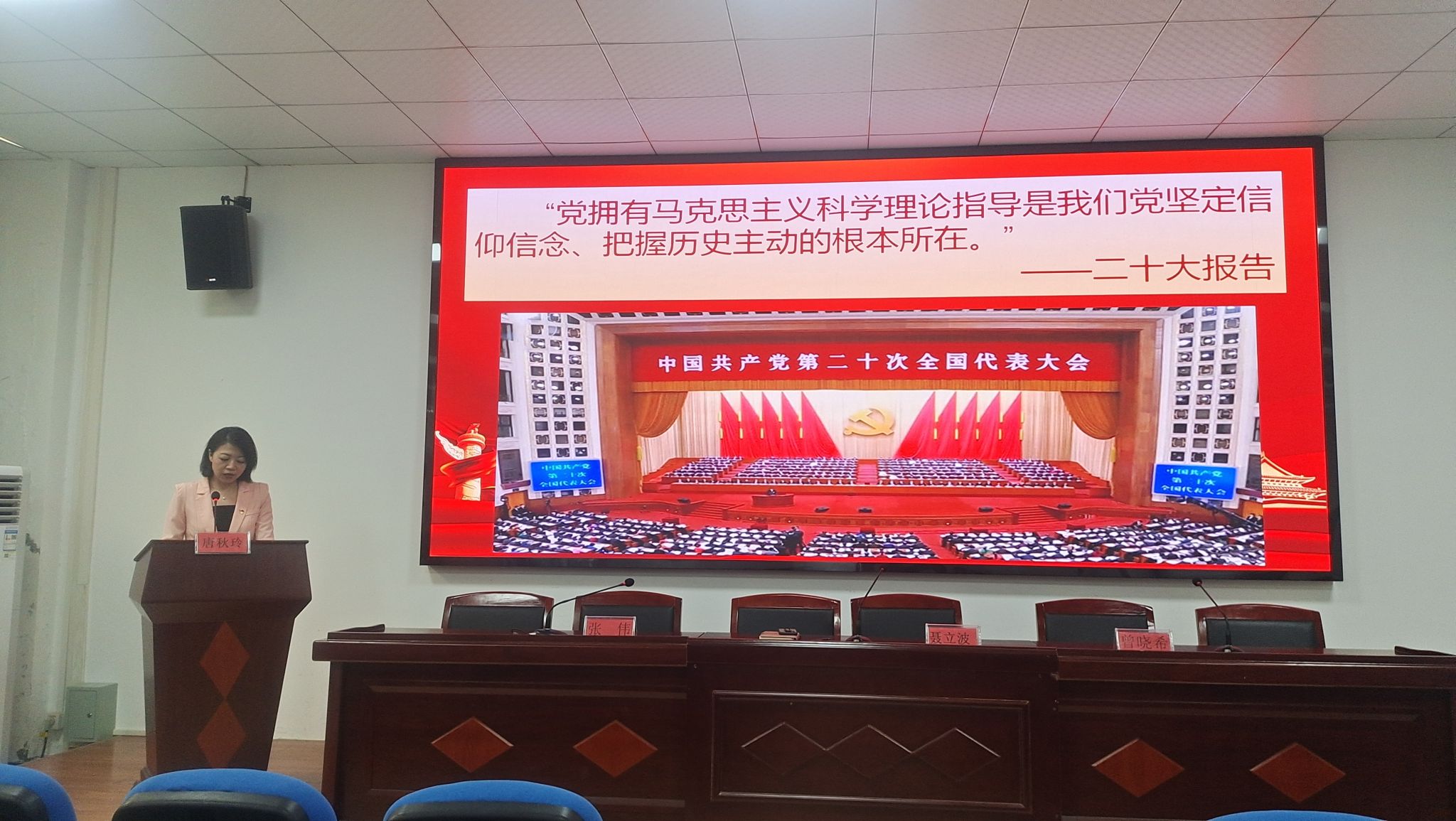 5月30日下午,学院党委书记唐秋玲以《新时代增强高校党组织思想引领力 提升党员干事创业的担当作为》为题,为全体教职工和学生党员代表讲授主题教育专题党课。
