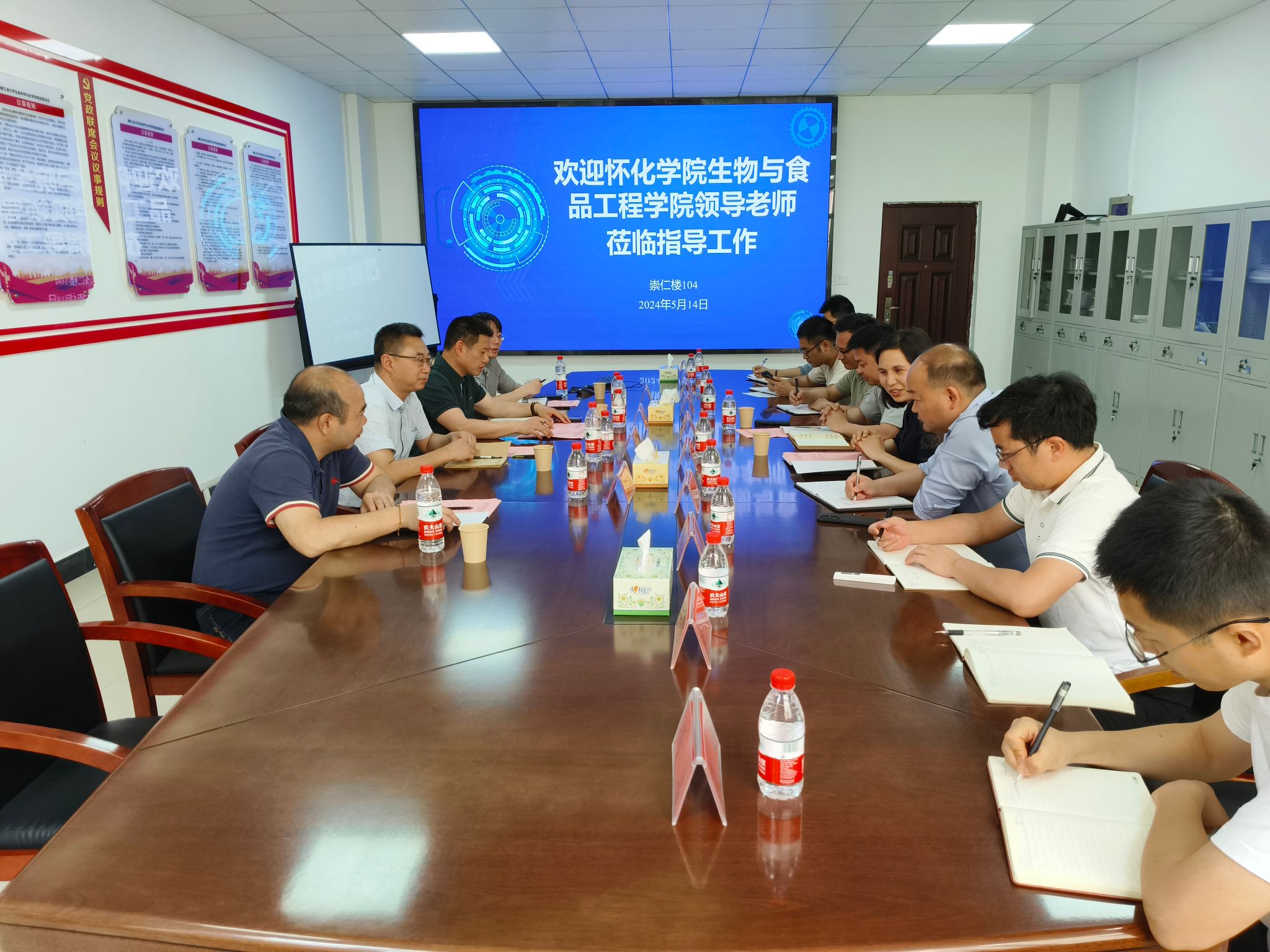 5月14日下午,湖南怀化学院生物与食品工程学院党委书记朱卫红、院长皮建辉 、民族药用植物资源与研究湖南省重点实验室主任肖龙骞和就业专干付广斌来我院交流工作。