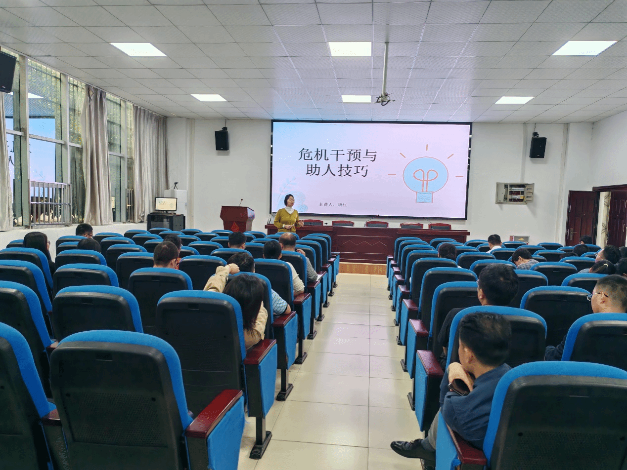 为提升我院教师心理健康育人能力,筑牢学生心理健康的“免疫墙”,对全体教师的心理健康知识普及,增强全体教师读懂学生、理解学生的能力,帮助我院教师在学科教学、班级管理中有效使用心理健康教育策略方法,4月30日上午学校心理教育中心专职教师唐红副教授为我院全体教职工开展《心理危机干预与助人技巧》讲座,全院教职工参加。