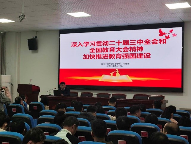 凝心聚力推动改革行稳致远,齐心协力建设民族复兴壮丽征程。为了深入学习贯彻党的二十届三中全会与全国教育大会精神,引导党员将思想与行动统一到党中央决策部署上来、将精神同方法落实在日常学习工作中去。2024年12月3日下午,学院在崇仁楼学术报告厅开展《学习贯彻二十届三中全会和全国教育大会精神》宣讲,本次宣讲由学院党委书记许建雄主讲,全体教职工和学生党员参加。
