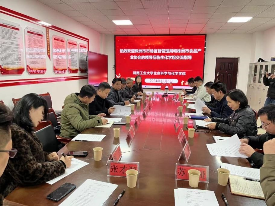 2024年12月6日下午,我院与株洲市市局党组成员、市场监督管理局副局长刘润平、株洲市食品产业协会会长熊曙光及10余家株洲优秀食品企业代表在崇仁楼104会议室举行交流座谈会。