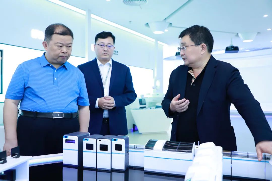 刘望一行在胡德明、宋永波两位校友的陪同引导下,参观了亚辉龙的仪器和试剂研发中心实验室、展厅、生产车间等场景,对亚辉龙的发展现状和研发实力进行细致了解。