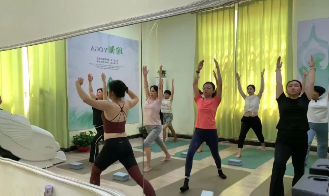 教师刘洁担当瑜伽教练,姿态闲适端坐在崭新的瑜伽垫上耐心讲解动作,其他老师认真学习模仿,根据动作要领,随着节奏打开身体。赏心悦目的室内环境,搭配洗涤人心的舒缓音乐,老师们通过瑜伽锻炼,不仅舒缓了身体,也净化了心灵。