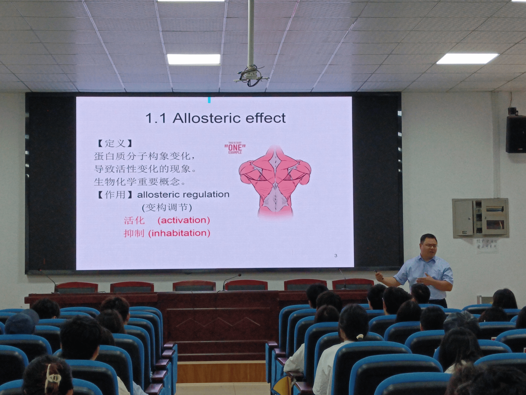 5月13日上午,湖南科技大学化学化工学院周再春教授应邀在我校崇仁楼学术报告厅作题为"血红素变构效应的模拟与应用"的学术讲座。本次讲座由副院长周贵寅副教授主持,吸引了学院研究生及本科生代表近百人参加。
