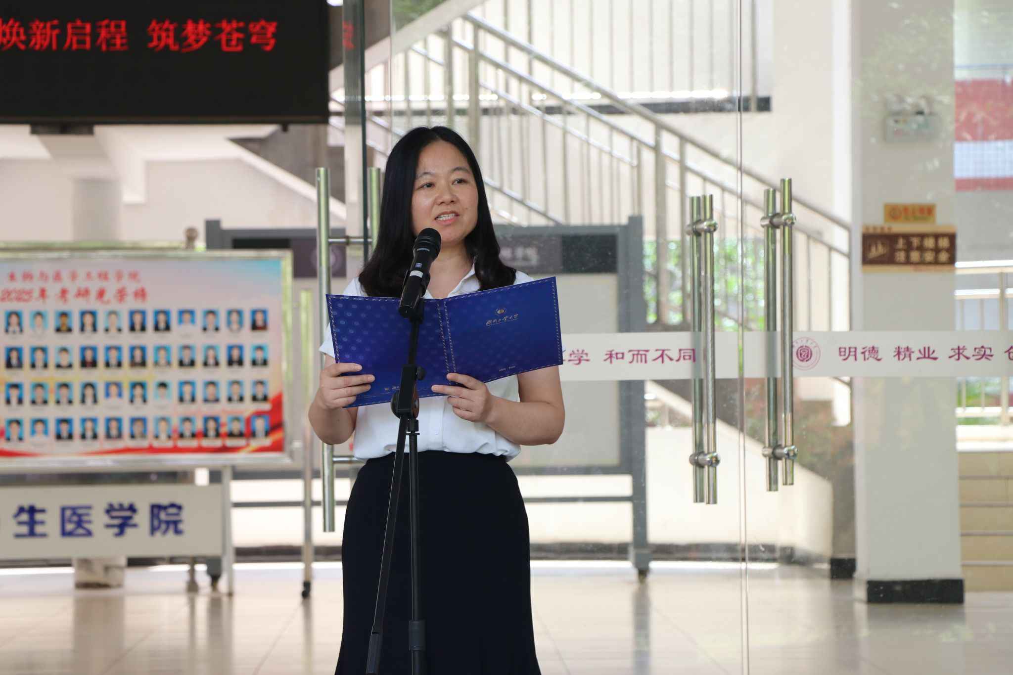 蒋昌波代表学校对学院揭牌表示祝贺。他指出,更名是学校优化学科布局、对接“健康中国”战略的关键举措,并对学院发展提三点希望:一是以博士点建设为抓手,夯实学科发展根基;二是以更名转型为起点,创新人才培养模式;三是以开放合作促发展,提升社会服务水平。刘望与蒋昌波携生物与医学工程学院党政负责人共同揭牌。