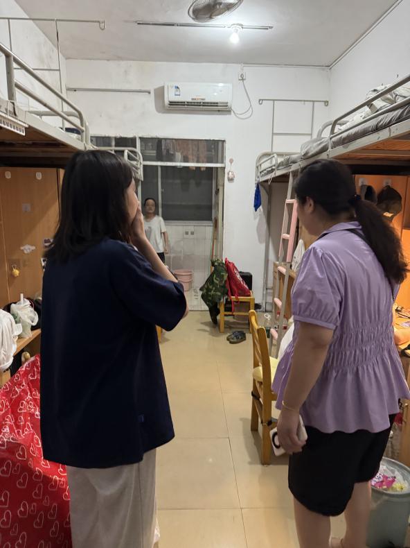 下寝过程中,班主任与学院领导轻叩宿舍门扉,在亲切的问候中开启交流。他们仔细查看宿舍的住宿环境,从床铺舒适度、采光通风情况,到水电设施使用安全,逐一细致询问,确保新生能在安全、舒心的环境中开启大学生活。面对新生提出的“食堂就餐攻略”“校园快递点位置”“课程表查询方法”等日常问题,老师们耐心解答,帮新生扫清生活与学习上的“小障碍”。
