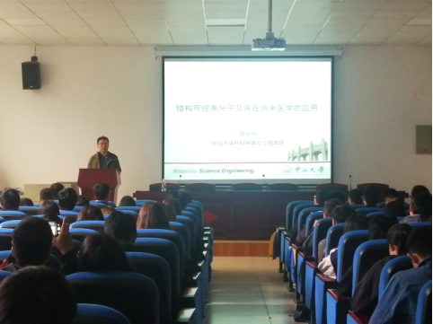 会议首先由陈永明教授进行“结构可控高分子在纳米医学的应用”的主题汇报。整个报告过程中,陈教授思路清晰、严谨认真,由浅入深地介绍了纳米医学的基础知识以及多方面的应用。报告十分精彩,也激发了在场的学生们的求知欲望,大家全神贯注,不放过丝毫学习的机会。