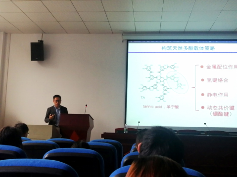 第二场是主题为“闪速纳米复合技术用于药物制剂开发”的学术报告,由刘志佳副教授为我们介绍了一种新型技术,他和他的课题组利用该技术不仅获得了国家专利,还取得了显著的研究成果。报告结束后,老师和学生们与刘老师在场下进行疑难点的探讨,大家受益匪浅,进一步开阔了学术视野。