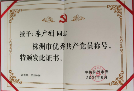 我院李广利同志荣获“株洲市优秀共产党员”称号