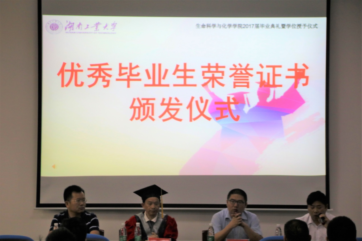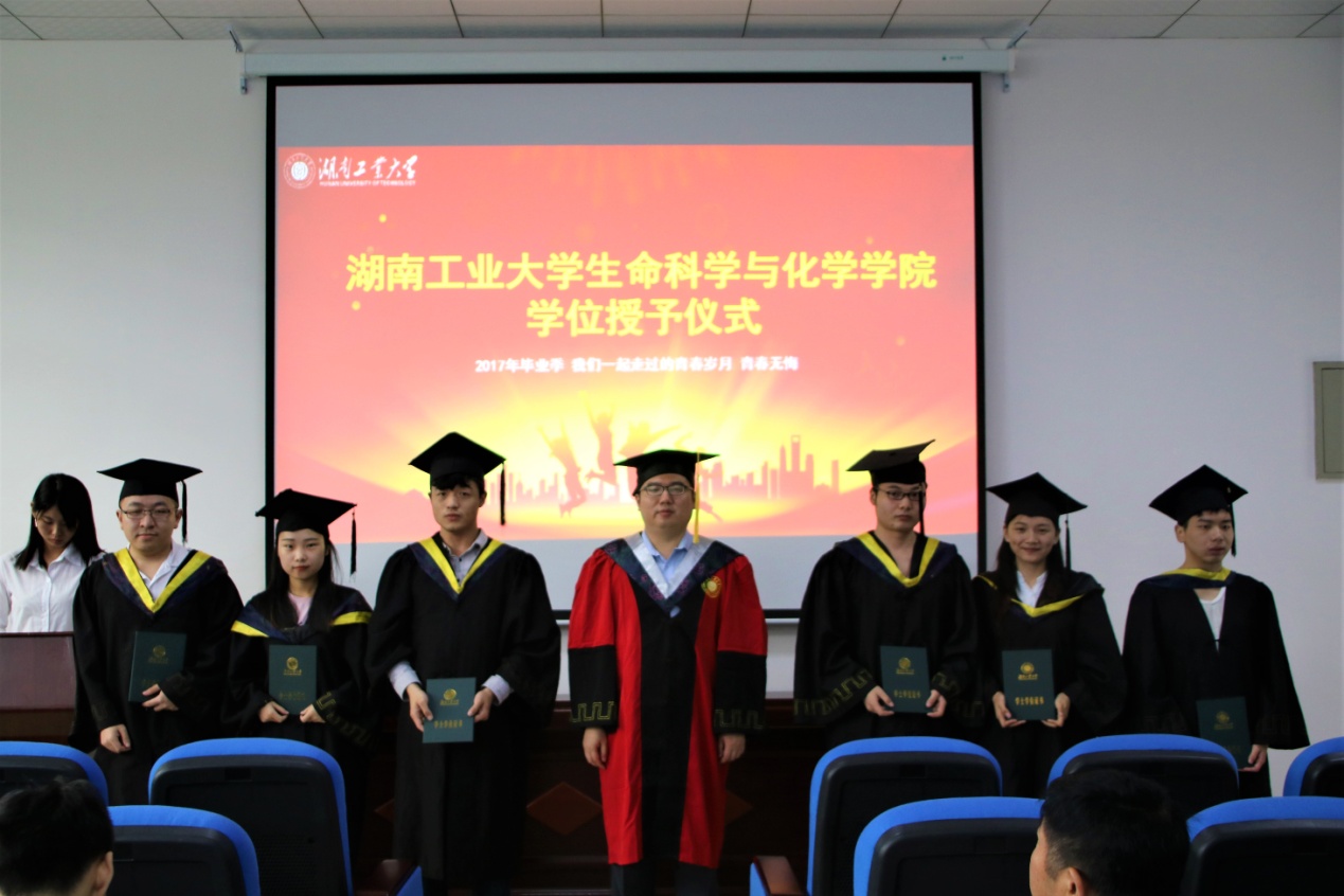 随后,2017届毕业生代表、在校学生代表、教师代表分别进行了发言。院长汤建新教授、党总支江轶书记为毕业生颁发学士学位证书,正官拔苏,握手道贺,并与他们合影留念。
