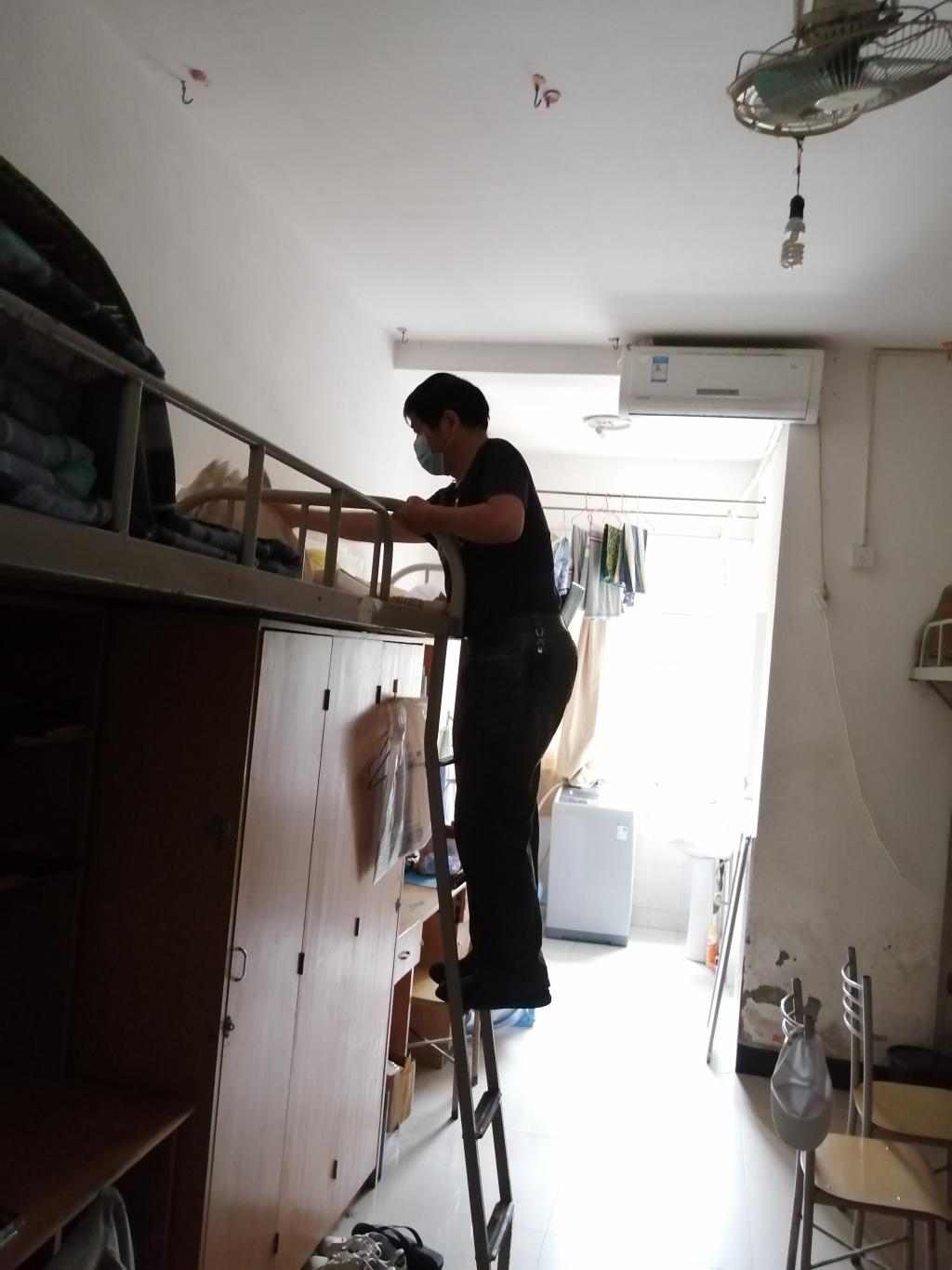黄书记带领各位老师打开宿舍门,检查宿舍内部情况,根据学校统一安排进行消杀。黄书记强调,一楼的毕业生宿舍有部门部分已经发霉,暂时无法居住,跟要毕业生联系带空调被过来,毕业生过来后要打开门窗,进行细致的卫生大扫除,老师们要全力为毕业生提供服务。