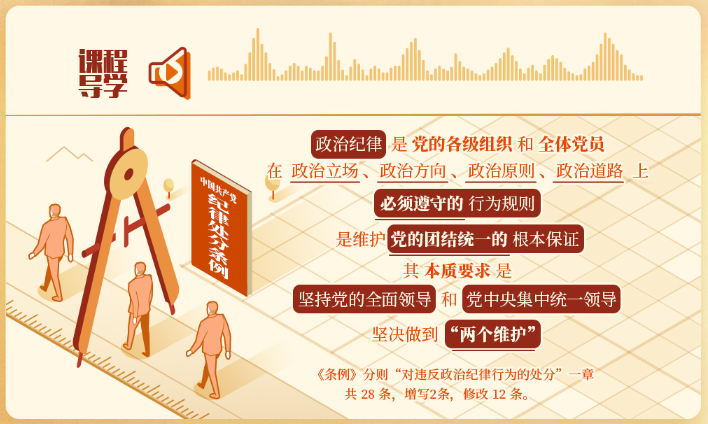 《中国共产党纪律处分条例》第二编分则第六章是对违反政治纪律的行为的处分规定。新修订的纪律处分条例第六章共 28 条,增写2条,修改 12 条。