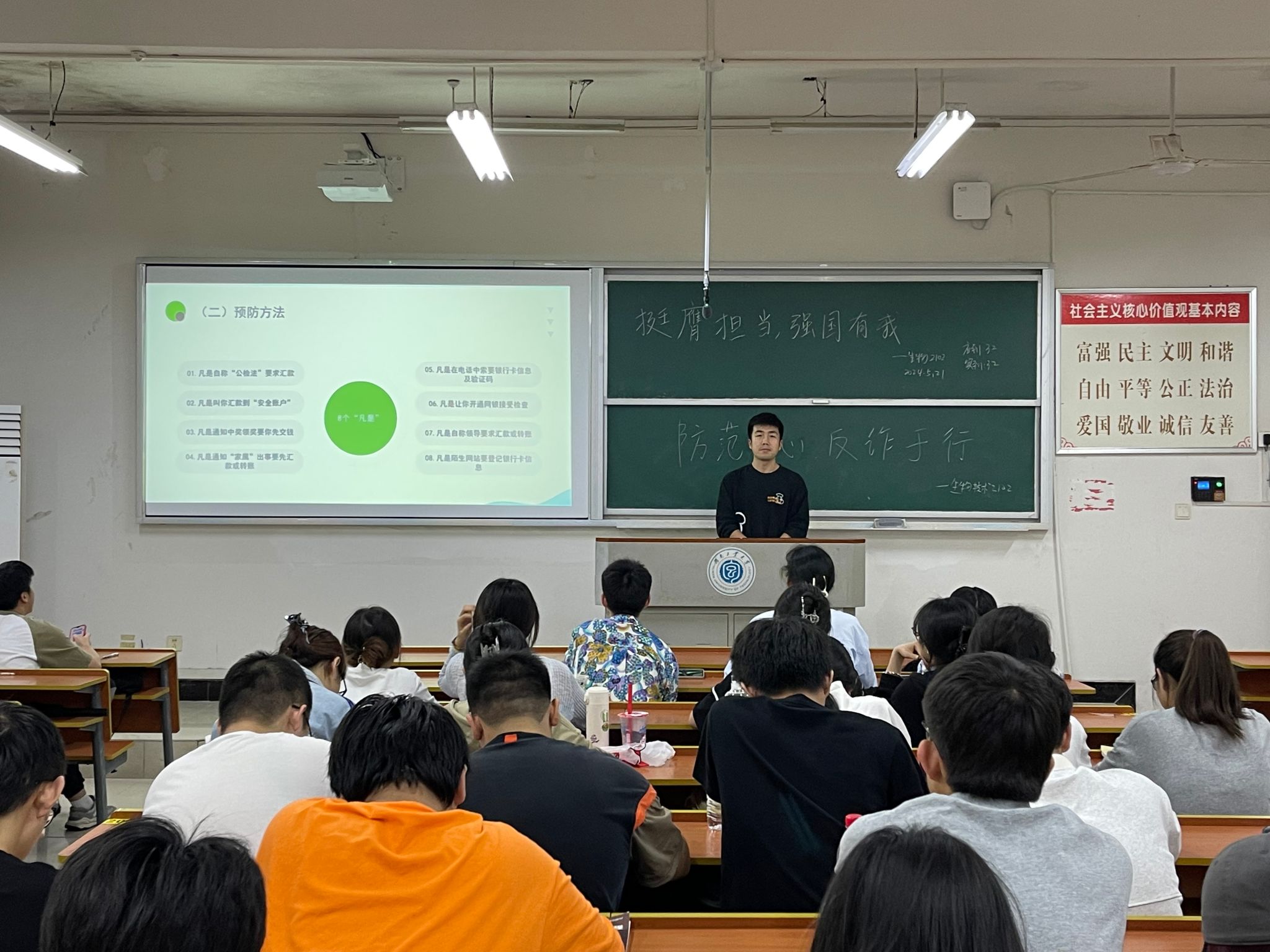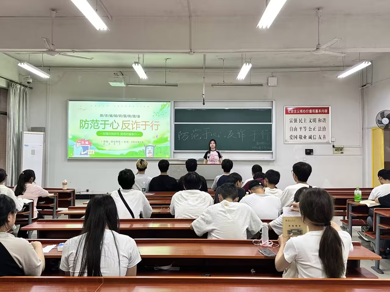 近期,我校学生中“反诈”形势依然严峻,为切实提高我院学生防范电信诈骗意识,提升识骗防骗能力,保障学生的财产安全,我院各班开展了反诈骗主题班会。