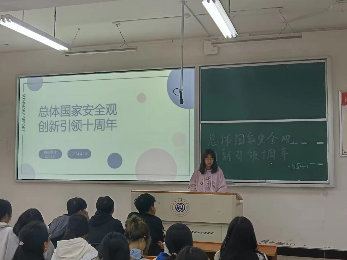 备豫不虞,为国常道。国家安全是安邦定国的重要基石,是维护全国各族人民根本利益所在。2024年是习近平总书记提出总体国家安全观10周年,4月15日将迎来第九个全民国家安全教育日。为切实提高师生的国家安全意识,营造维护国家安全的浓厚氛围,进一步促进国家安全教育, 我院4月 9日至 11日召开“总体国家安全观·创新引领10周年”主题教育班会。