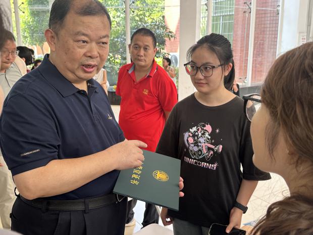 "我去年入学时,也是学长学姐帮我拿行李、办手续,今年我想把这份温暖传递下去。"2024级志愿者李同学一边擦着汗一边笑着说。整整一天,他来回奔波二十余趟,衬衫早已被汗水浸透,却始终保持着灿烂的笑容。