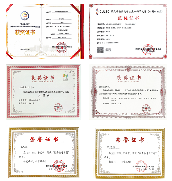 参加各级各项双创类、学科类竞赛,共获荣誉11项。参加两项2024scip+绿色化学化工创新创业大赛项目,负责的项目拥有1项发明专利、7项实用新型专利、2项外观专利,与多家公司签订协议合同。曾作为华中地区唯一入选决赛的项目,受百威中国邀请前往上海复旦大学国家大学创新科技园展示,获得百威中国高度肯定并发出商业合作邀请。参赛经历多次作为“学院唯一”被校级及以上媒体报道,曾受邀参加株洲高新区支持大学生创新创业项目启动仪式。