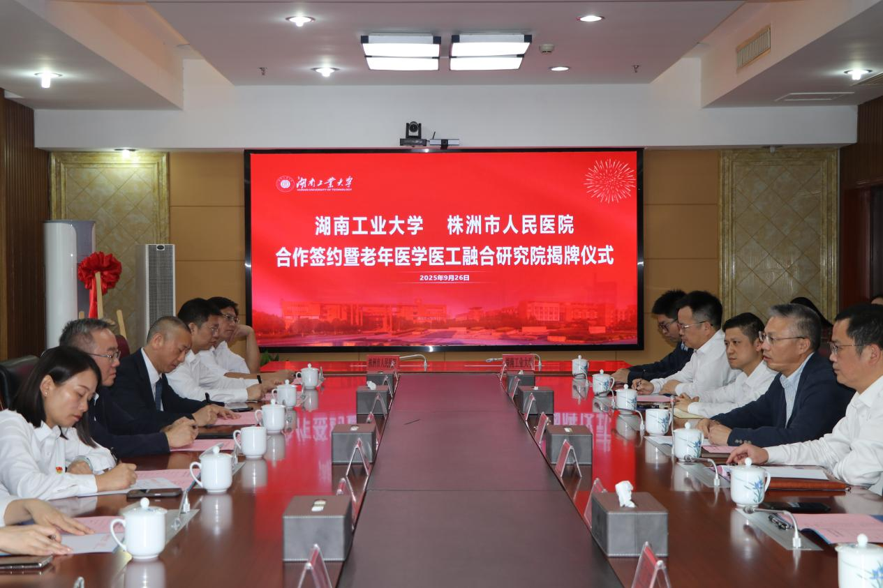 金秋九月,硕果盈枝。9月26日上午,我校与株洲市人民医院合作签约暨“老年医学医工融合研究院”揭牌仪式在崇德楼340会议室举行。株洲市人民政府副市长杨胜跃,株洲市人民医院院长丁建华,我校校长蒋昌波、副校长何杰及双方相关部门负责人出席,我院党委书记贺全国、院长聂立波、副院长曾晓希及系主任李广利、黄钊、杨纯、王武参会。