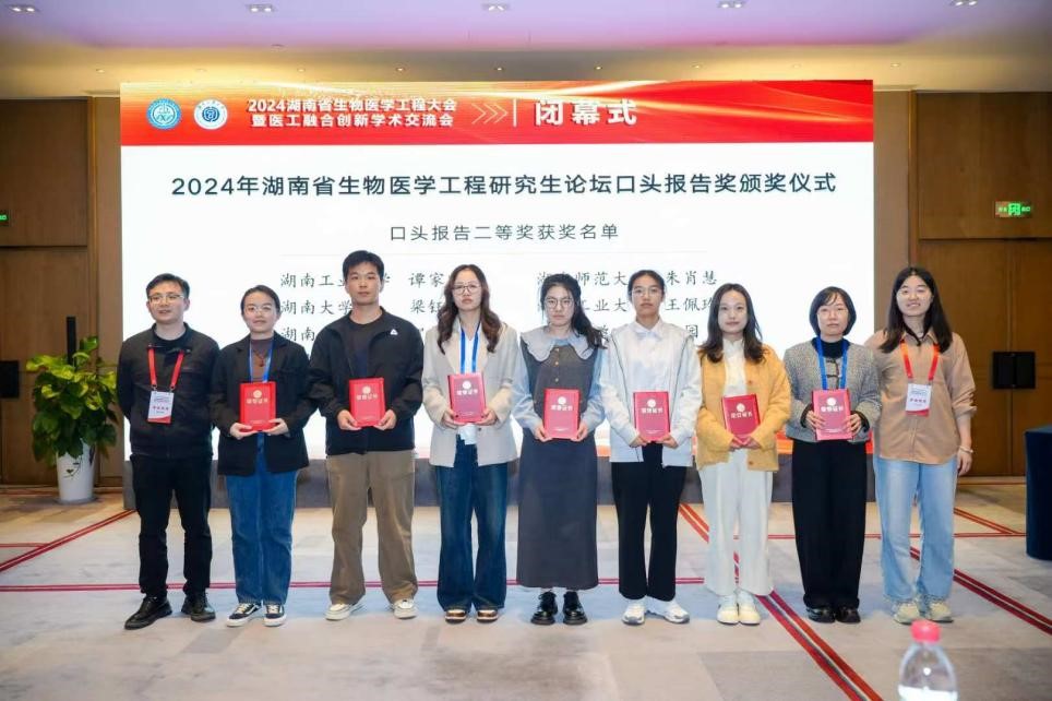生物医学工程专业22级刘炎、贺然和23级谭家欣、王佩玲在湖南省生物医学工程研究生论坛口头报告中获得口头汇报二等奖。