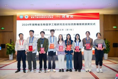 2024年11月2-3日,2024湖南省生物医学工程大会暨医工融合创新学术交流会在湖南株洲召开。我院多名研究生参加此次大会并在研究生论坛上荣获一等奖2项,二等奖4项,优秀墙报奖5项。