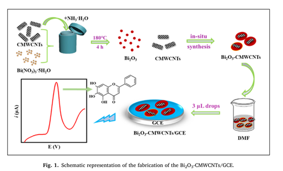贺全国、丁建华课题组研究生史淑婷于2023年在Journal of Food Composition and Analysis杂志上发表了名为Facile and ultrasensitive electrochemical detection of baicalein on bismuth oxide-carboxylated multi-walled carbon nanotube/glassy carbon electrode的研究型论文(Volume 123, 2023, 105557)。本工作研究了一种基于二氧化铋-羧基化多壁碳纳米管/玻璃碳电极(Bi2O3-CMWCNTs/GCE)的新型电化学传感器,用于检测中药成分黄芩素。结果表明,该传感器在0.01至15 μmol⋅L−1的浓度范围内对黄芩素具有线性响应,检测下限达到2.0 nmol⋅L−1,展现了优异的灵敏度和选择性。此外,该传感器成功应用于人尿和中药药材黄芩的黄芩素检测,证明了其在实际样品分析中的有效性和可靠性。这项工作为黄芩素及其他黄酮类化合物的检测提供了一种新的高灵敏度电化学方法,对中药质量控制和食品安全监测具有重要意义。