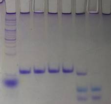 图2 可行性实验荧光光谱图以及聚丙烯酰胺凝胶电泳结果图