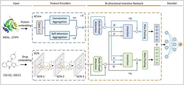该论文介绍了通过集成图卷积网络GCN、ACmix和双向Intention网络,开发了一个端到端的DTI预测框架BINDTI。